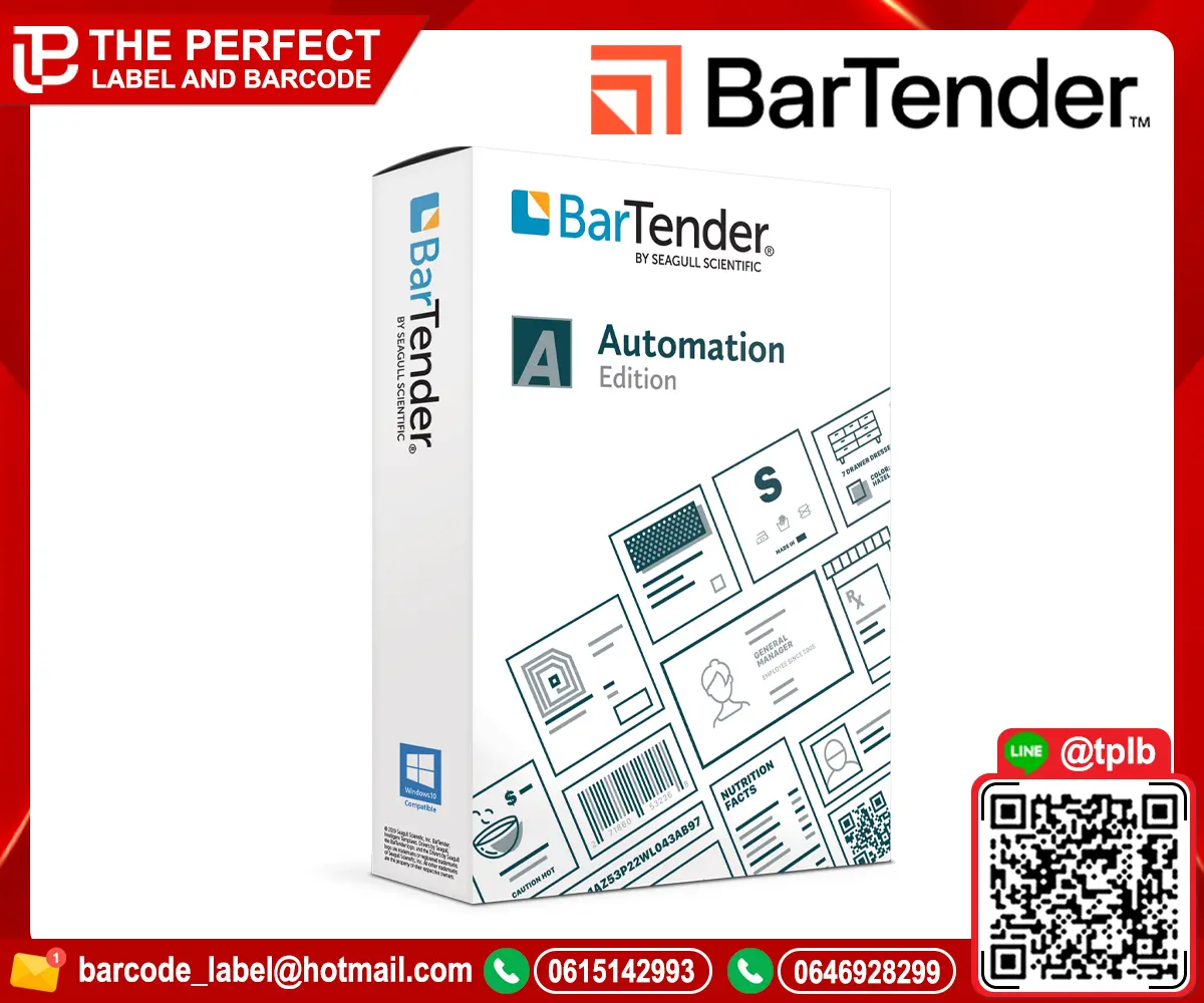 เราจำหน่ายโปรแกรมบาร์เทนเดอร์ (BarTender Software) นำเข้าจากต่างประเทศเป็น โปรแกรมสำหรับการพิมพ์ฉลากรหัสแท่ง บน Windows หรือซอฟต์แวร์สำหรับการออกแบบและพิมพ์ฉลากบาร์โค้ด และ ป้าย RFID