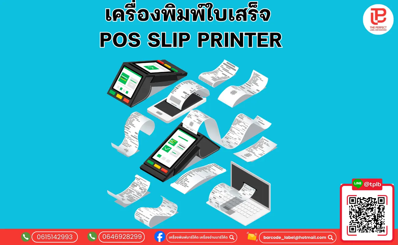 เครื่องพิมพ์ใบเสร็จ POS Slip Printer ลักษณะการทำงานเหมือนเครื่องปริ๊นเตอร์ทั่วไป และนำมาพัฒนาเพื่อใช้สำหรับการทำงานกับกระดาษม้วนใบเสร็จ โดยเฉพาะใช้ในการพิมพ์ใบเสร็จอย่างย่อหรือสลิป