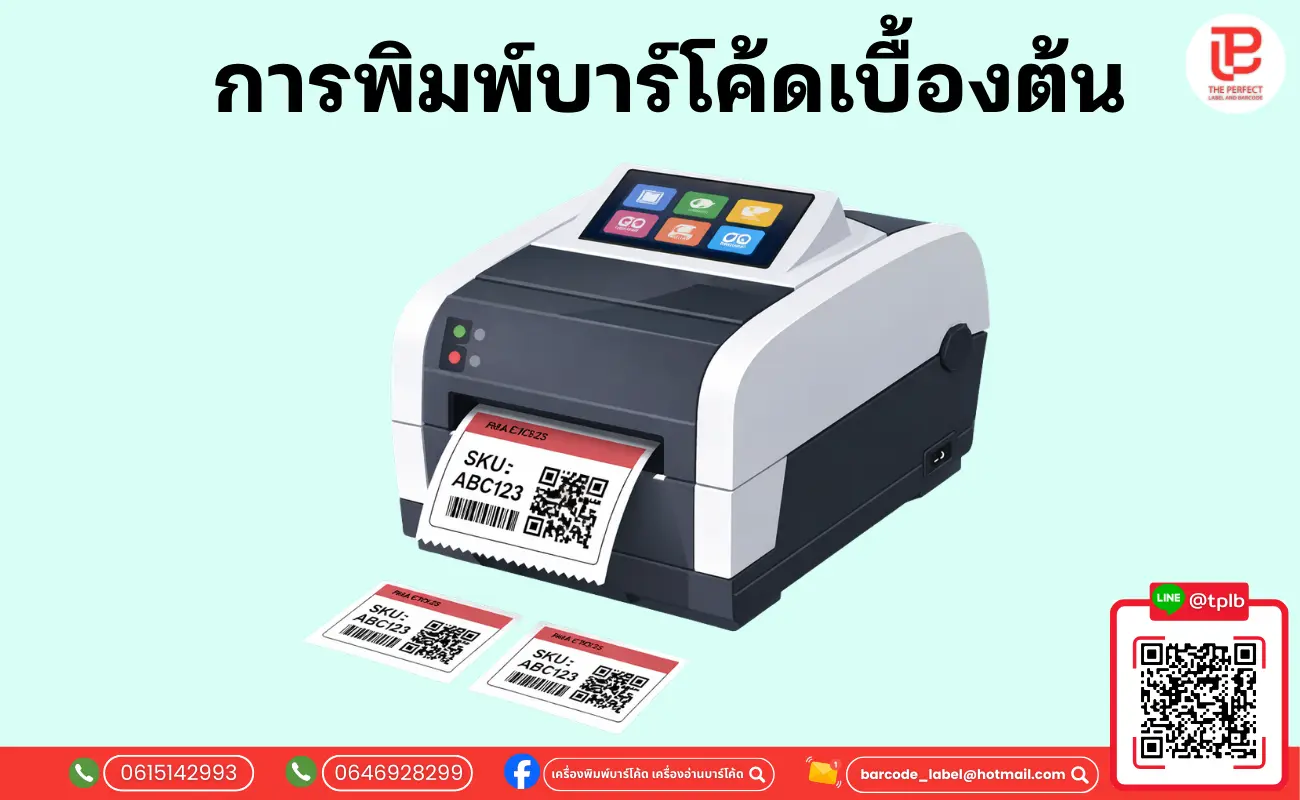 การพิมพ์บาร์โค้ดเบื้องต้น มี2แบบ คือ การพิมพ์แบบถ่ายโอนความร้อนผ่านริบบอน หรือผ้าหมึก และ การพิมพ์ผ่านความร้อนโดยตรง
