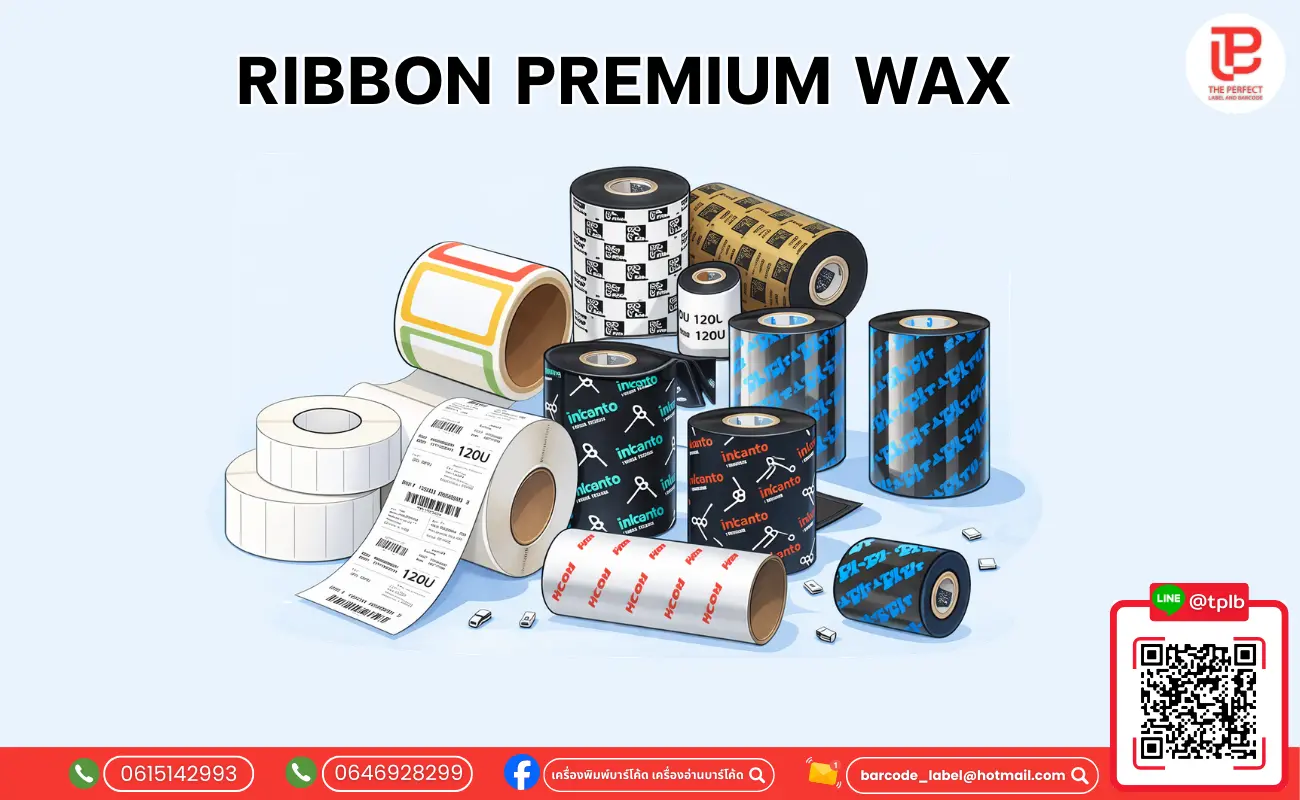 RIBBON PREMIUM WAX คือ ริบบอนบาร์โค้ด คือริบบอนที่ใส่ใจทุกขั้นตอนในการที่คิดค้นนวัตกรรมใหม่ ๆ อย่างไม่หยุดยั้งเพื่อให้เทคโนโลยีที่คิดค้นสามารถสอบสนองความต้องการของลูกค้าได้ดีที่สุด